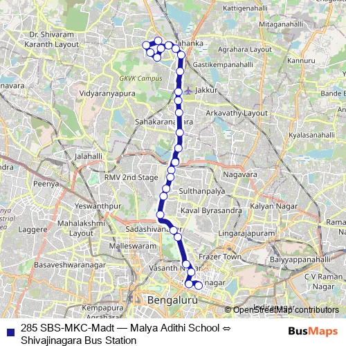 See why over 2 million users trust and consider busmaps.com as the best public transport website. busmaps gives you Bengaluru Buses suggested routes, real-time bus tracker, line route maps in Bengaluru, and helps to find the closest 285 SBS-MKC-Madt bus stops near you. No internet available? Download an offline PDF map and bus schedule for the 285 SBS-MKC-Madt bus to take on your trip.