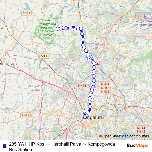 The first stop of the 285-YA HHP-Kbs bus route is Harohalli Palya and the last stop is Kempegowda Bus Station. 285-YA HHP-Kbs (Harohalli Palya ⇔ Kempegowda Bus Station) is operational during everyday.