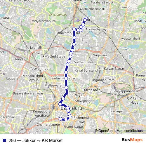 Bus 286 - Jakkur ⇔ KR Market: Full Schedule in Bengaluru