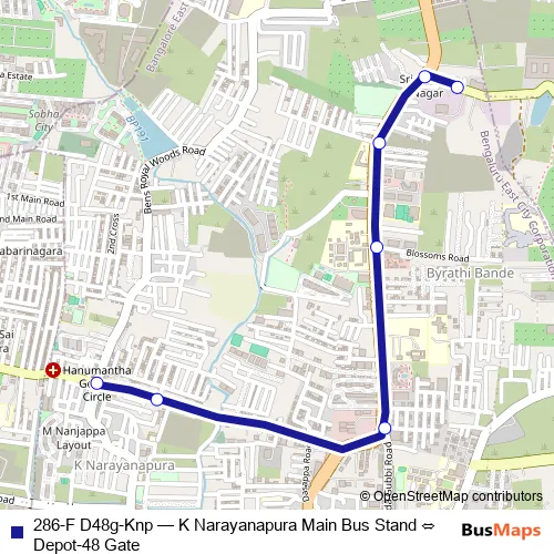 The first stop of the 286-F D48g-Knp bus route is Depot-48 Gate and the last stop is K Narayanapura Main Bus Stand. 286-F D48g-Knp (K Narayanapura Main Bus Stand ⇔ Depot-48 Gate) is operational during everyday.