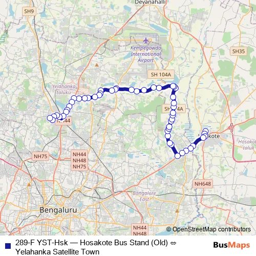 Yelahanka Satellite Town. 289-F YST-Hsk (Hosakote Bus Stand (Old) ⇔ Yelahanka Satellite Town) is operational during everyday.