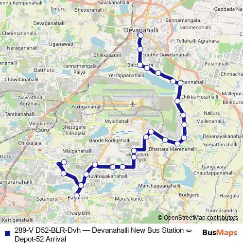 See why over 2 million users trust and consider busmaps.com as the best public transport website. busmaps gives you Devanahalli Buses suggested routes, real-time bus tracker, line route maps in Devanahalli, and helps to find the closest 289-V D52-BLR-Dvh bus stops near you. No internet available? Download an offline PDF map and bus schedule for the 289-V D52-BLR-Dvh bus to take on your trip.