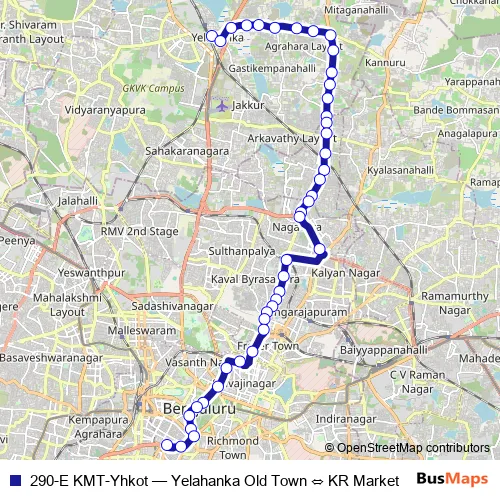 Click here to view the nearest 290-E KMT-Yhkot - Yelahanka Old Town ⇔ KR Market bus stop.