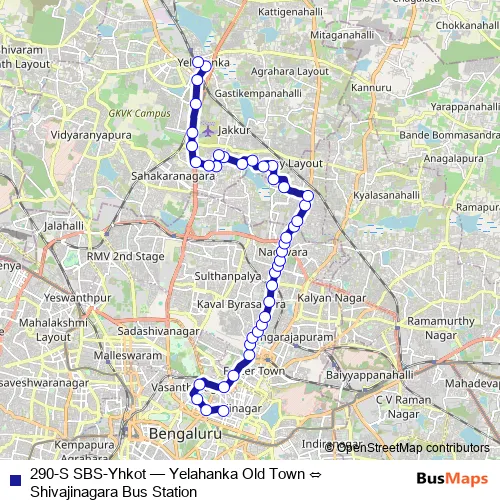 Bus 290-S SBS-Yhkot - Yelahanka Old Town ⇔ Shivajinagara Bus Station: Full Schedule in Bengaluru