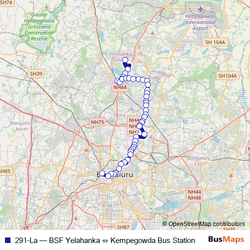 Bus 291-La - BSF Yelahanka ⇔ Kempegowda Bus Station in Bengaluru: Stops & Timetable