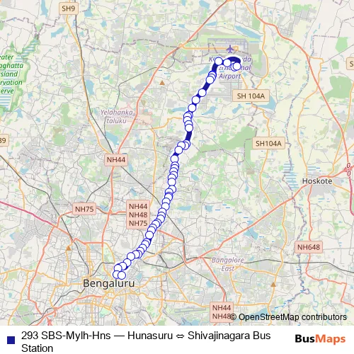 Services on the 293 SBS-Mylh-Hns - Hunasuru ⇔ Shivajinagara Bus Station bus stop at 20:04 on Monday, Tuesday, Wednesday, Thursday, Friday, Saturday, Sunday.