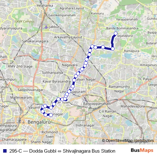 Bus 295-C - Dodda Gubbi ⇔ Shivajinagara Bus Station: Full Schedule in Bengaluru
