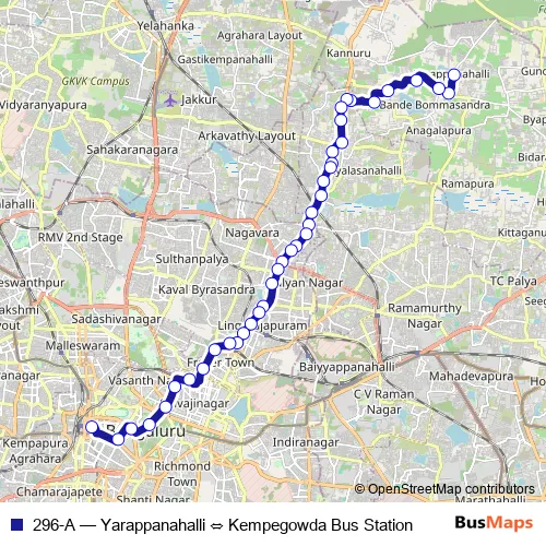 Bus 296-A - Yarappanahalli ⇔ Kempegowda Bus Station in Bengaluru: Stops & Timetable