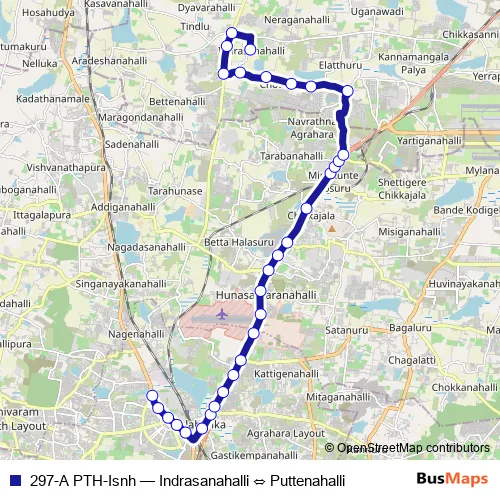 The first stop of the 297-A PTH-Isnh bus route is Puttenahalli and the last stop is Indrasanahalli. 297-A PTH-Isnh (Indrasanahalli ⇔ Puttenahalli) is operational during everyday.