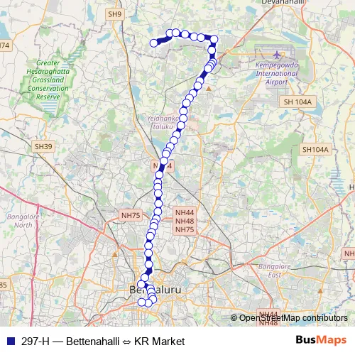 Bus 297-H - Bettenahalli ⇔ KR Market in Bengaluru: Stops & Timetable