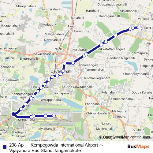 Bus 298-Ap - Kempegowda International Airport ⇔ Vijayapura Bus Stand Jangamakote in Devanahalli: Stops & Timetable