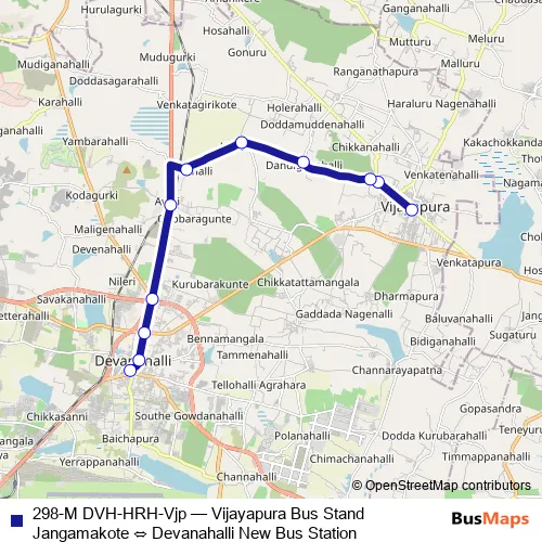 Bus 298-M DVH-HRH-Vjp - Vijayapura Bus Stand Jangamakote ⇔ Devanahalli New Bus Station: Full Schedule in Devanahalli