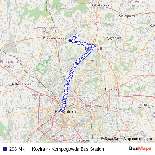 See why over 2 million users trust and consider busmaps.com as the best public transport website. busmaps gives you Bengaluru Buses suggested routes, real-time bus tracker, line route maps in Bengaluru, and helps to find the closest 298-Mk bus stops near you. No internet available? Download an offline PDF map and bus schedule for the 298-Mk bus to take on your trip.
