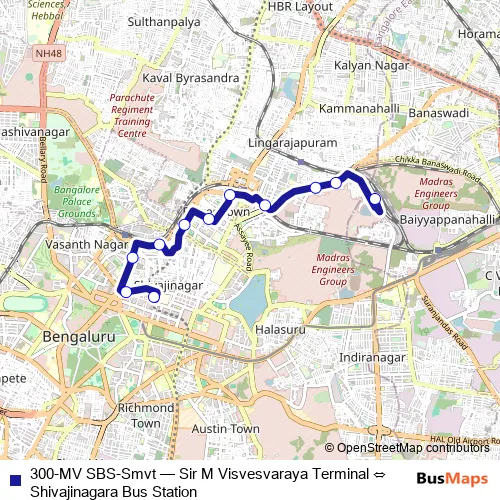 Shivajinagara Bus Station. 300-MV SBS-Smvt (Sir M Visvesvaraya Terminal ⇔ Shivajinagara Bus Station) is operational during everyday.