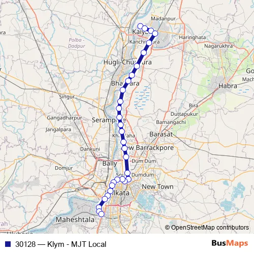 The first stop of the 30128 rail route is Kalyani Simanta and the last stop is Majerhat. 30128 (Klym - MJT Local) is operational during everyday.