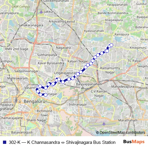 Bus 302-K - K Channasandra ⇔ Shivajinagara Bus Station: Full Schedule in Bengaluru