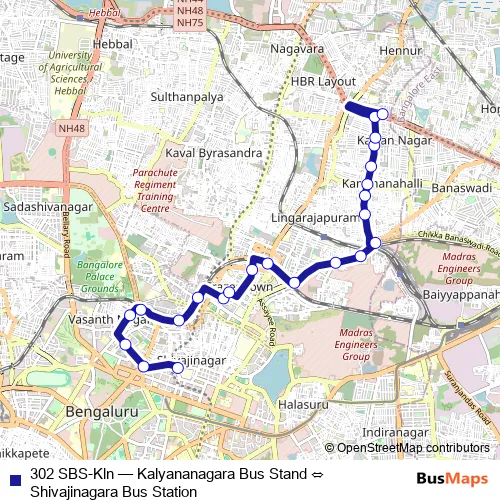 Bus 302 SBS-Kln - Kalyananagara Bus Stand ⇔ Shivajinagara Bus Station: Full Schedule in Bengaluru