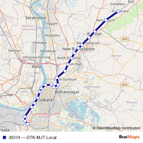 The first stop of the 30314 rail route is Dattapukur and the last stop is Majerhat. 30314 (DTK-MJT Local) is operational during everyday.