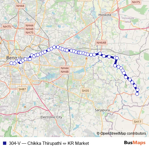 See why over 2 million users trust and consider busmaps.com as the best public transport website. busmaps gives you Bengaluru Buses suggested routes, real-time bus tracker, line route maps in Bengaluru, and helps to find the closest 304-V bus stops near you. No internet available? Download an offline PDF map and bus schedule for the 304-V bus to take on your trip.