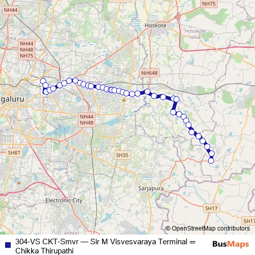 See why over 2 million users trust and consider busmaps.com as the best public transport website. busmaps gives you Bengaluru Buses suggested routes, real-time bus tracker, line route maps in Bengaluru, and helps to find the closest 304-VS CKT-Smvr bus stops near you. No internet available? Download an offline PDF map and bus schedule for the 304-VS CKT-Smvr bus to take on your trip.