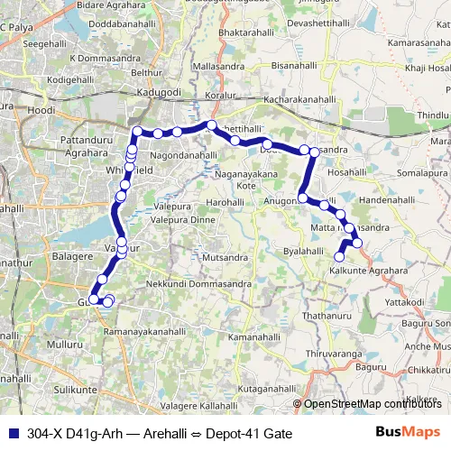 Bus 304-X D41g-Arh - Arehalli ⇔ Depot-41 Gate in Bengaluru: Stops & Timetable