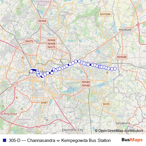 See why over 2 million users trust and consider busmaps.com as the best public transport website. busmaps gives you Bengaluru Buses suggested routes, real-time bus tracker, line route maps in Bengaluru, and helps to find the closest 305-D bus stops near you. No internet available? Download an offline PDF map and bus schedule for the 305-D bus to take on your trip.