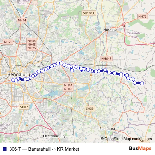 See why over 2 million users trust and consider busmaps.com as the best public transport website. busmaps gives you Bengaluru Buses suggested routes, real-time bus tracker, line route maps in Bengaluru, and helps to find the closest 306-T bus stops near you. No internet available? Download an offline PDF map and bus schedule for the 306-T bus to take on your trip.