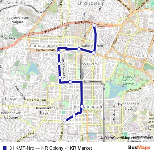 Bus 31 KMT-Nrc - NR Colony ⇔ KR Market: Full Schedule in Bengaluru