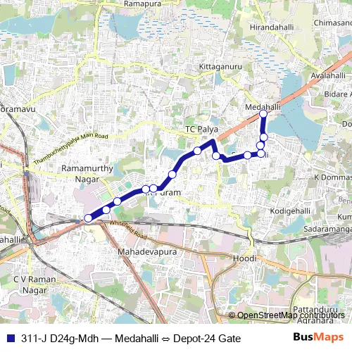 Click here to view the nearest 311-J D24g-Mdh - Medahalli ⇔ Depot-24 Gate bus stop.