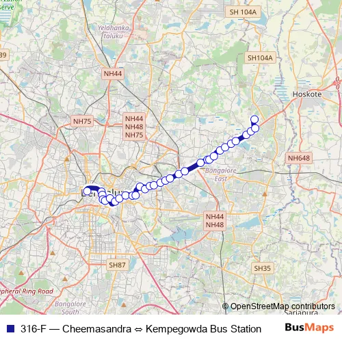 See why over 2 million users trust and consider busmaps.com as the best public transport website. busmaps gives you Bengaluru Buses suggested routes, real-time bus tracker, line route maps in Bengaluru, and helps to find the closest 316-F bus stops near you. No internet available? Download an offline PDF map and bus schedule for the 316-F bus to take on your trip.