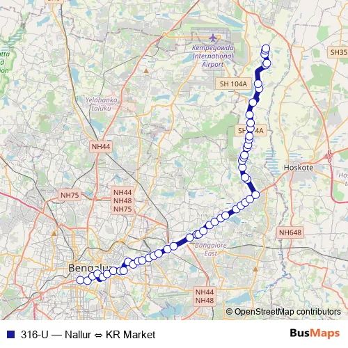 Bus 316-U - Nallur ⇔ KR Market in Bengaluru: Stops & Timetable