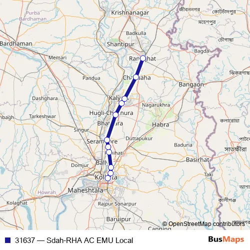 The first stop of the 31637 rail route is Sealdah and the last stop is Ranaghat Jn. 31637 (Sdah-RHA AC EMU Local) is operational during everyday.