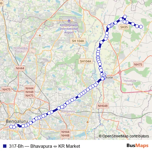See why over 2 million users trust and consider busmaps.com as the best public transport website. busmaps gives you Bengaluru Buses suggested routes, real-time bus tracker, line route maps in Bengaluru, and helps to find the closest 317-Bh bus stops near you. No internet available? Download an offline PDF map and bus schedule for the 317-Bh bus to take on your trip.