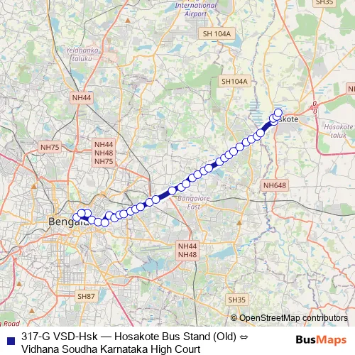 Hosakote Bus Stand (Old). 317-G VSD-Hsk (Hosakote Bus Stand (Old) ⇔ Vidhana Soudha Karnataka High Court) is operational during everyday.