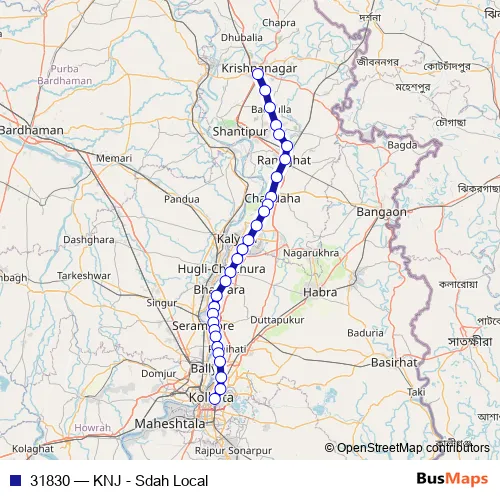 The first stop of the 31830 rail route is Krishngr CTY Jn and the last stop is Sealdah. 31830 (KNJ - Sdah Local) is operational during everyday.