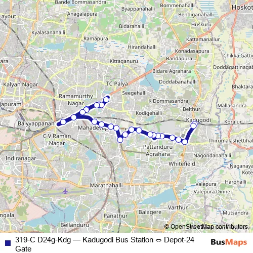 Click here to view the nearest 319-C D24g-Kdg - Kadugodi Bus Station ⇔ Depot-24 Gate bus stop.