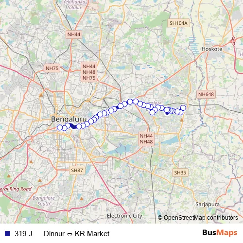 See why over 2 million users trust and consider busmaps.com as the best public transport website. busmaps gives you Bengaluru Buses suggested routes, real-time bus tracker, line route maps in Bengaluru, and helps to find the closest 319-J bus stops near you. No internet available? Download an offline PDF map and bus schedule for the 319-J bus to take on your trip.
