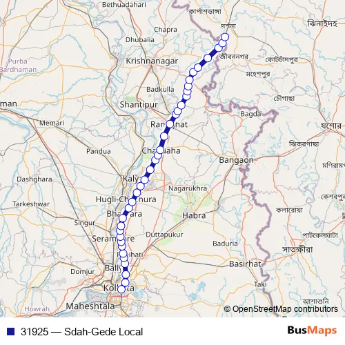 The first stop of the 31925 rail route is Sealdah and the last stop is Gede. 31925 (Sdah-Gede Local) is operational during everyday.
