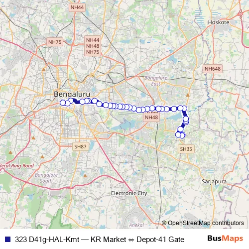 See why over 2 million users trust and consider busmaps.com as the best public transport website. busmaps gives you Bengaluru Buses suggested routes, real-time bus tracker, line route maps in Bengaluru, and helps to find the closest 323 D41g-HAL-Kmt bus stops near you. No internet available? Download an offline PDF map and bus schedule for the 323 D41g-HAL-Kmt bus to take on your trip.