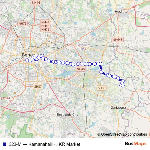 See why over 2 million users trust and consider busmaps.com as the best public transport website. busmaps gives you Bengaluru Buses suggested routes, real-time bus tracker, line route maps in Bengaluru, and helps to find the closest 323-M bus stops near you. No internet available? Download an offline PDF map and bus schedule for the 323-M bus to take on your trip.