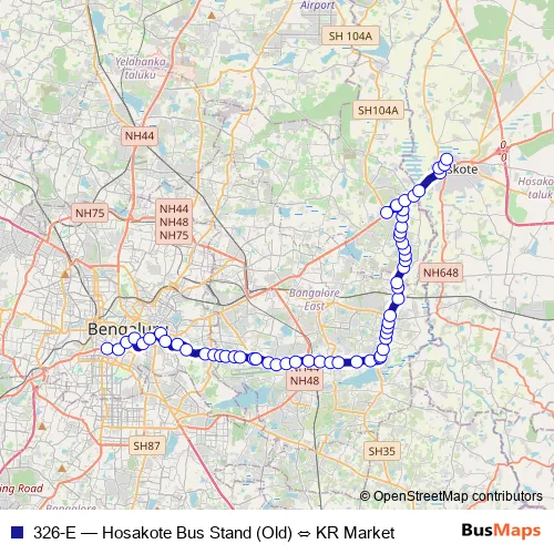 Click here to view the nearest 326-E - Hosakote Bus Stand (Old) ⇔ KR Market bus stop.