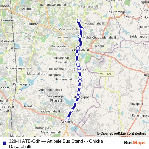 Click here to view the nearest 328-H ATB-Cdh - Attibele Bus Stand ⇔ Chikka Dasarahalli bus stop.