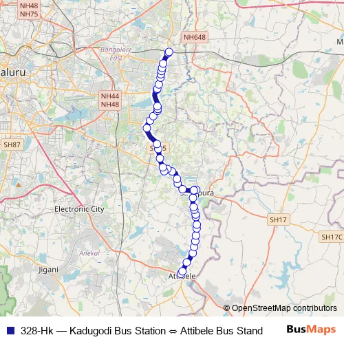 See why over 2 million users trust and consider busmaps.com as the best public transport website. busmaps gives you Bengaluru Buses suggested routes, real-time bus tracker, line route maps in Bengaluru, and helps to find the closest 328-Hk bus stops near you. No internet available? Download an offline PDF map and bus schedule for the 328-Hk bus to take on your trip.