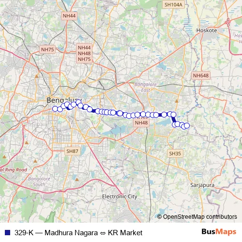 See why over 2 million users trust and consider busmaps.com as the best public transport website. busmaps gives you Bengaluru Buses suggested routes, real-time bus tracker, line route maps in Bengaluru, and helps to find the closest 329-K bus stops near you. No internet available? Download an offline PDF map and bus schedule for the 329-K bus to take on your trip.