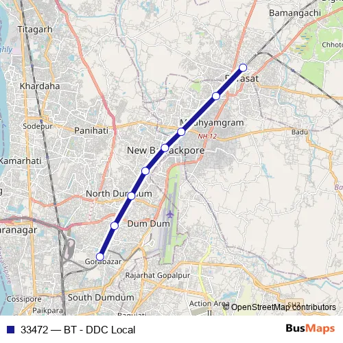 The first stop of the 33472 rail route is Barasat and the last stop is DUM DUM Cant. 33472 (BT - DDC Local) is operational during everyday.