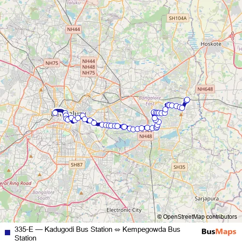 Bus 335-E - Kadugodi Bus Station ⇔ Kempegowda Bus Station in Bengaluru: Stops & Timetable