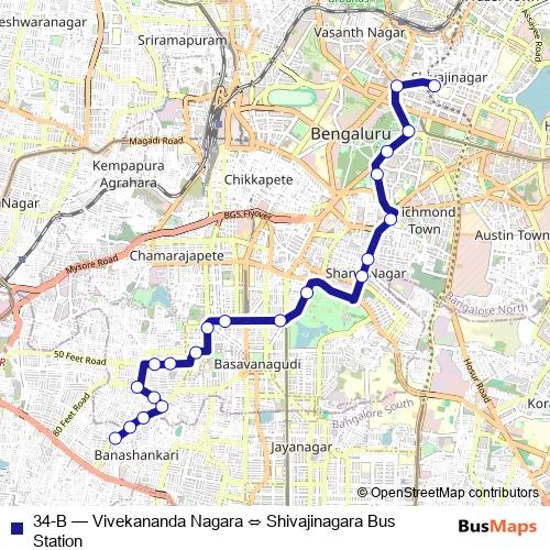 Bus 34-B - Vivekananda Nagara ⇔ Shivajinagara Bus Station Schedule in Bengaluru