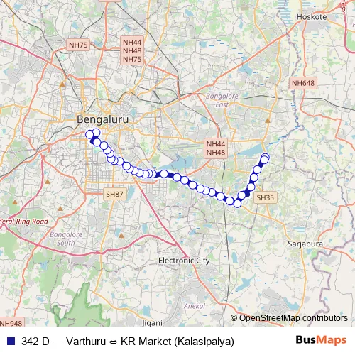 KR Market (Kalasipalya). 342-D (Varthuru ⇔ KR Market (Kalasipalya)) is operational during everyday.