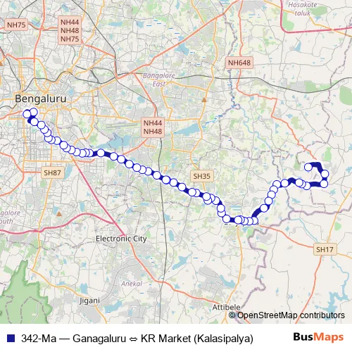 See why over 2 million users trust and consider busmaps.com as the best public transport website. busmaps gives you Bengaluru Buses suggested routes, real-time bus tracker, line route maps in Bengaluru, and helps to find the closest 342-Ma bus stops near you. No internet available? Download an offline PDF map and bus schedule for the 342-Ma bus to take on your trip.