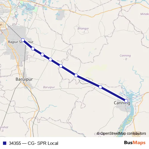 The first stop of the 34355 rail route is Canning and the last stop is Sonarpur Jn.. 34355 (CG- SPR Local) is operational during everyday.